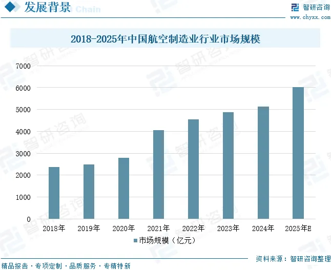 航空是指载人或不载人的飞行器在地球大气层中的航行活动,航空制造业即航空装备制造业,是指在地球在大气层中的飞行器的设计、测试、制造和维修,以及与之相关的其他设备如地面监控设备、调试设备、加工装调等设备的制造。2023年5月,我国商业航空市场迎来里程碑时刻——国产商飞C919完成首次商业飞行。这结束了我国没有自主品牌商业大飞机的历史,标志着国产大飞机正式进入民航市场,开启市场化运营、产业化发展的新征程,国产航空装备制造真正开始走向国际顶尖领域。大飞机长产业链、高关联度、强辐射带动作用的特征推动着航空经济不断发展壮大,引领航空装备制造业蓬勃发展。从市场规模来看,近几年我国航空制造市场规模呈现持续扩大态势。据统计,2018-2024年,中国航空制造业行业市场规模从2357亿元增长至5133亿元,年复合增长率为13.85%。预计2025年中国航空制造业行业规模将达到6017亿元。航空电机系统作为航空制造业的核心功能单元,承担着飞行器发电、配电与电力驱动等关键任务。随着国产大飞机商业化进程加速和航空装备升级,将推动航空电机系统向更高功率密度、更强可靠性和智能化方向持续发展。