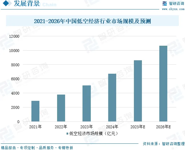 低空经济的蓬勃发展是航空电机系统迈向新阶段的核心驱动力。作为电动垂直起降飞行器等低空航空器的动力与控制核心,航空电机系统直接决定了飞行器的性能与安全,其技术升级与产业规模扩张与低空经济的演进深度绑定、互为支撑。低空经济是指以低空空域为依托,以各种有人驾驶和无人驾驶航空器的低空飞行活动为牵引,辐射带动航空旅游、支线客运、通航服务、科研教育等相关领域融合发展的综合性经济形态。低空经济的发展以各种有人驾驶和无人驾驶航空器的各类低空飞行活动为牵引,可以辐射带动相关领域融合发展的综合性经济形态,具有产业链条长、辐射面广、成长性和带动性强等特点。近年来,中国低空经济规模逐年增长。数据显示,2024年中国低空经济行业市场规模为6703亿元,同比增长32.47%,预计2026年中国低空经济行业规模将达到10645亿元。
