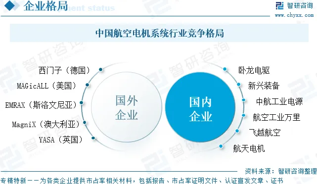 中国航空电机系统行业已形成国内外企业共同发展的竞争格局。国际领先企业如西门子、MAGicALL、EMRAX等凭借深厚技术积累和品牌优势占据高端市场主导地位;国内企业则以卧龙电驱、中航工业电源、航空工业万里等为代表,通过持续技术创新和国产化替代战略积极拓展市场空间。当前,随着市场竞争日趋激烈,行业资源整合与兼并重组步伐加快,推动着技术、人才、资本等要素向优势企业集中,这不仅有助于提升国内企业的核心竞争力,也将促进整个行业向更高集中度和更完善产业生态的方向发展。