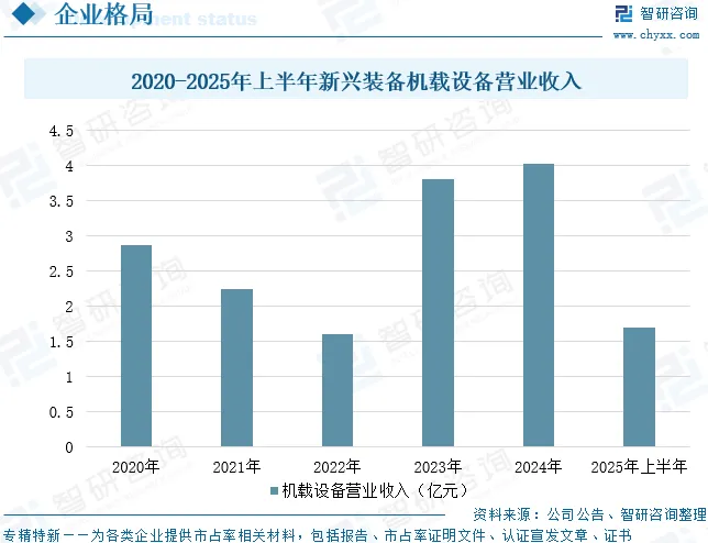 北京新兴东方航空装备股份有限公司主营业务是以伺服控制技术为核心的航空装备产品的研发、生产、销售及相关服务。公司主要产品分为机载设备和技术服务及其他两类,公司产品可广泛应用于直升机、固定翼飞机和无人机等航空装备领域,属于高科技的机电一体化产品。公司机载设备类产品目前主要包括机载悬挂/发射装置类产品、飞机信息管理与记录系统类、外挂封严装置等产品。机载悬挂/发射装置类产品是以智能控制技术/精密传动技术为基础的随动系统类产品,主要由智能控制计算机、电传动机构、伺服电机等部件构成,主要应用于直升机和固定翼飞机。飞机信息管理与记录系统类产品主要是视频信息探测、采集、处理、压缩、记录、显示和传输设备产品,包括机载用视频处理系统和视频记录仪等。外挂封严装置是某型飞机的配套产品,用于实现飞机外挂物投放后机翼结构上各外挂点的相关功能。数据显示,2025年上半年,新兴装备机载设备营业收入为1.69亿元,同比下降19.52%。