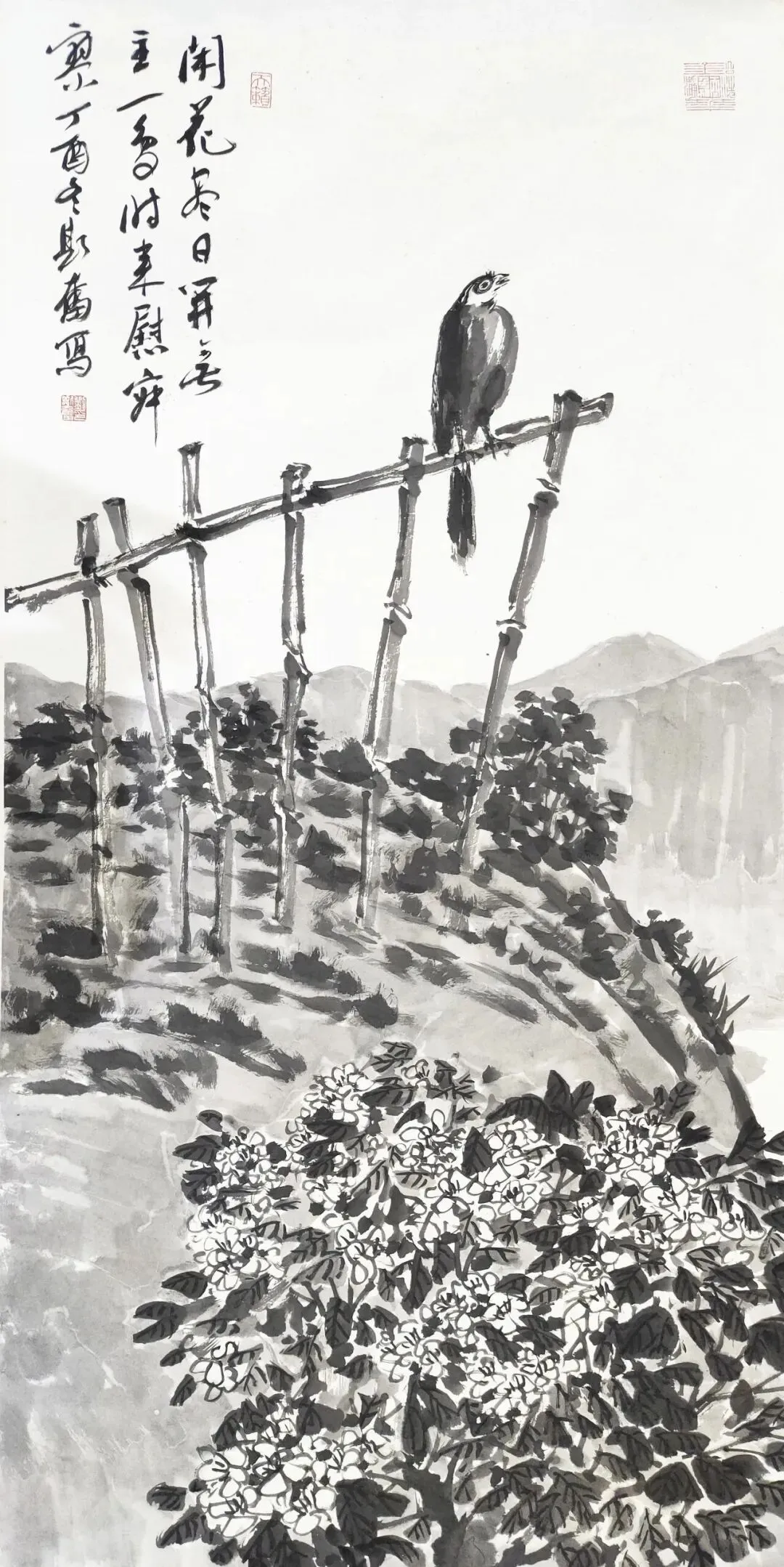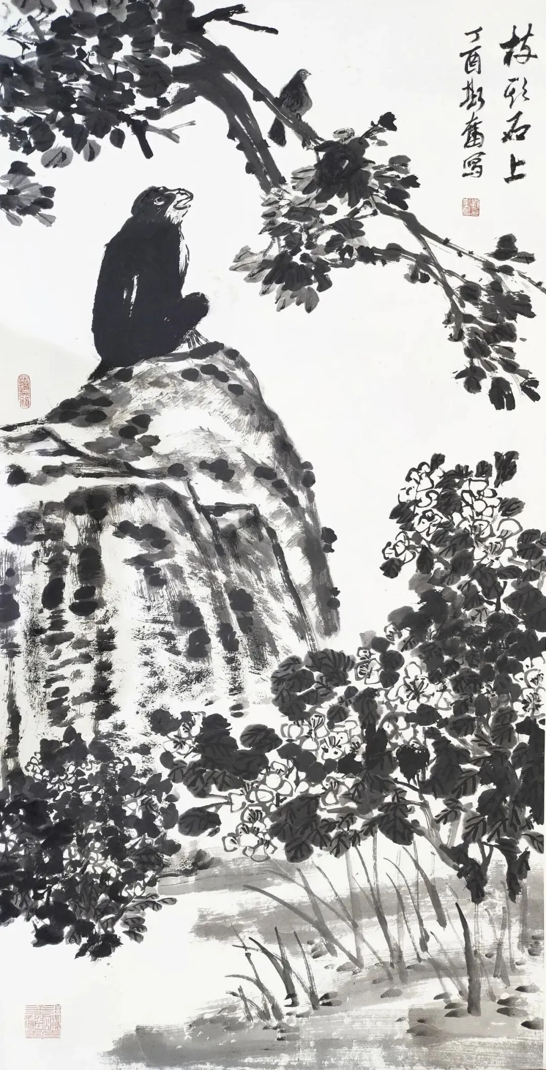 ▲ 刘斯奋《枝头石上》国画 138×68cm