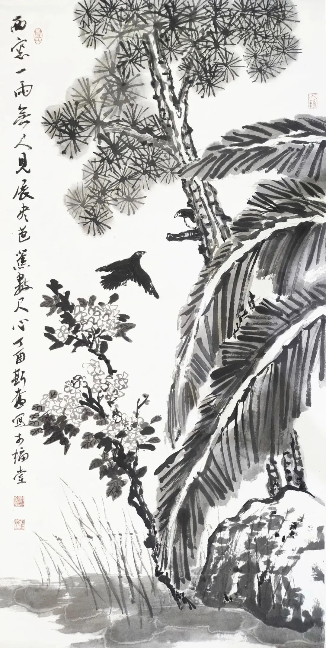▲ 刘斯奋《西窗一雨》国画 138×68cm