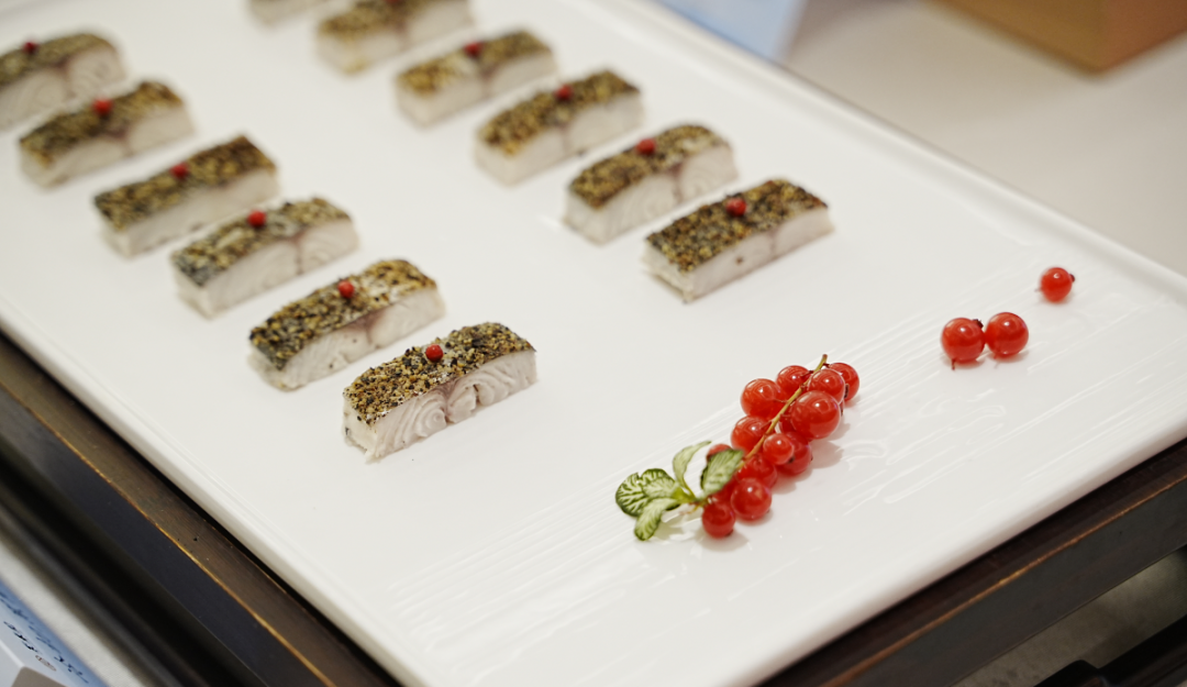 鲅鱼泳技绝佳,擅长冲刺,因此肉厚实,有劲道。鱼肉的鲜味儿与黑胡椒的辛辣在口腔中碰撞,口感丰富。