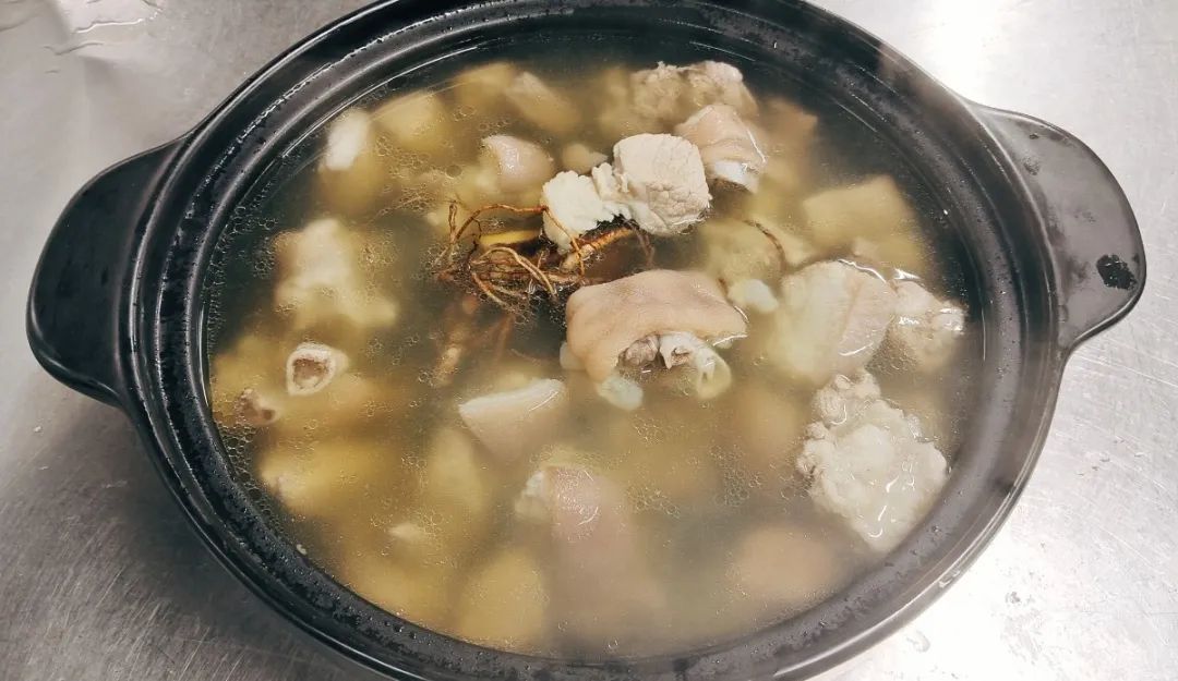 采用农家散养的土猪前腿肉,肉质香醇紧实,再加上野生“牛奶根”,一起炖煮,猪脚软糯,满满的胶质感。汤头清冽,带着草根的香气,一口下肚,从胃里暖了起来。