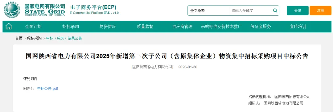 国网陕西省电力有限公司2025年新增第三次子公司(含原集体企业)物资集中招标采购项目中标公告