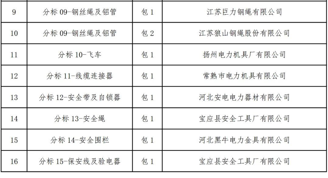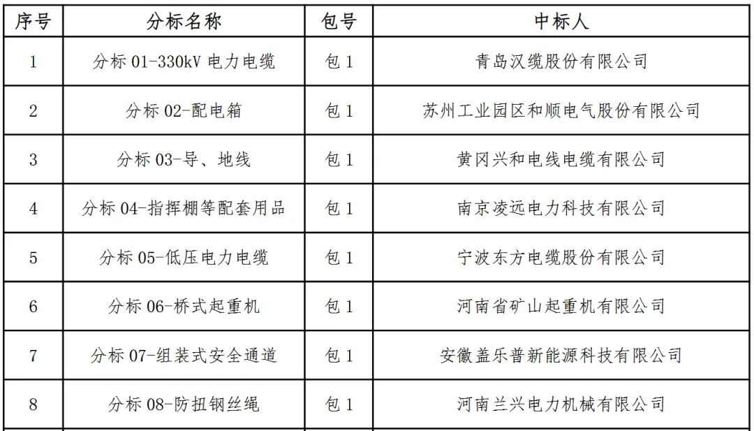 国网陕西省电力有限公司2025年新增第三次子公司(含原集体企业)物资集中招标采购项目中标候选人公示活动已经结束,现将中标结果公告如下: