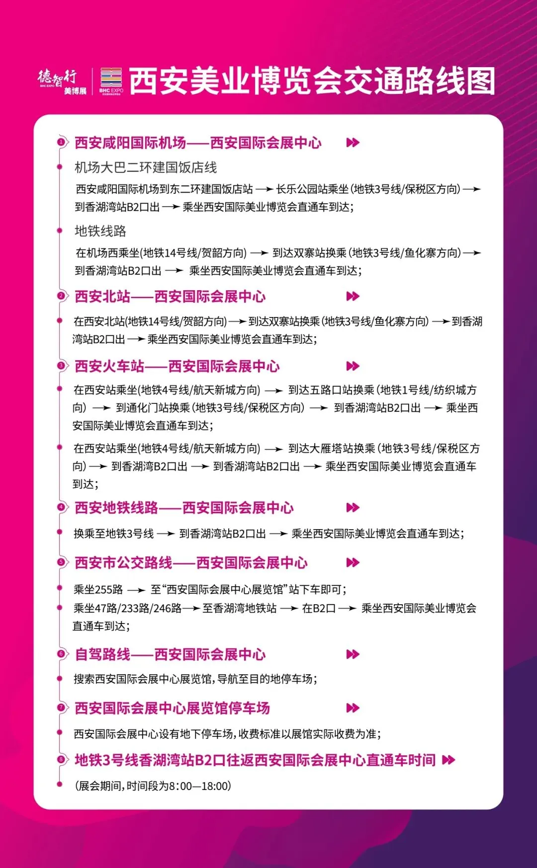 打开百度/高德地图APP/网站搜索“西安国际会展中心展览馆”即可获得交通/乘车路线