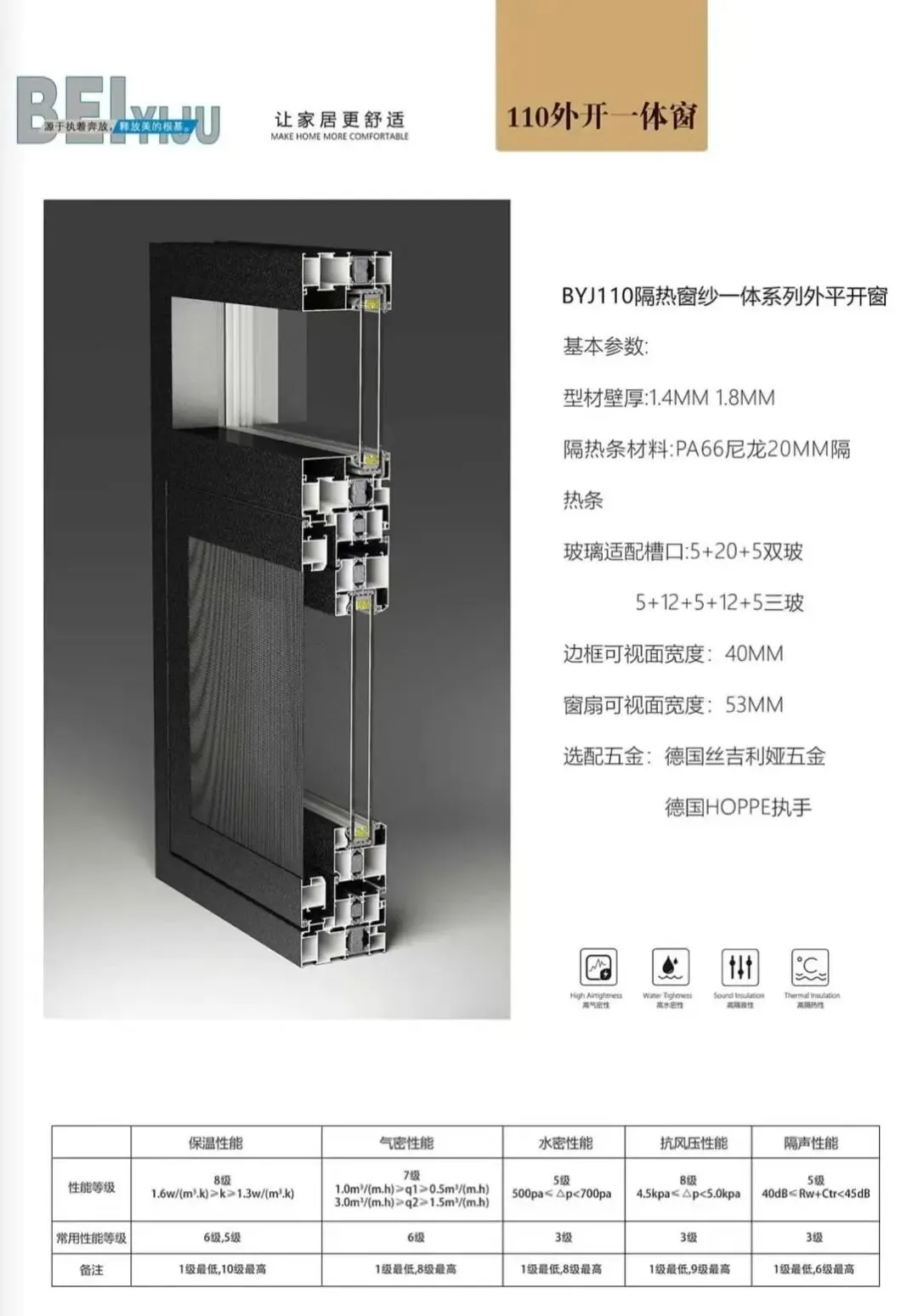 山东省倍宜居门窗科技有限公司,是国内一家专业从事系统门窗、阳光房,研发生产、销售为一体的门窗企业公司。在分析和研究国内外门窗的基础上,不断研发适合国内门窗市场的产品。坚持正规化管理理念,严把质量关,逐步向更高端的企业发展。公司始终奉行,智造优品门窗,提供品质生活的企业理念。取长补短,不断完善产品性能,为企业向高品质,高要求发展,夯实基础。