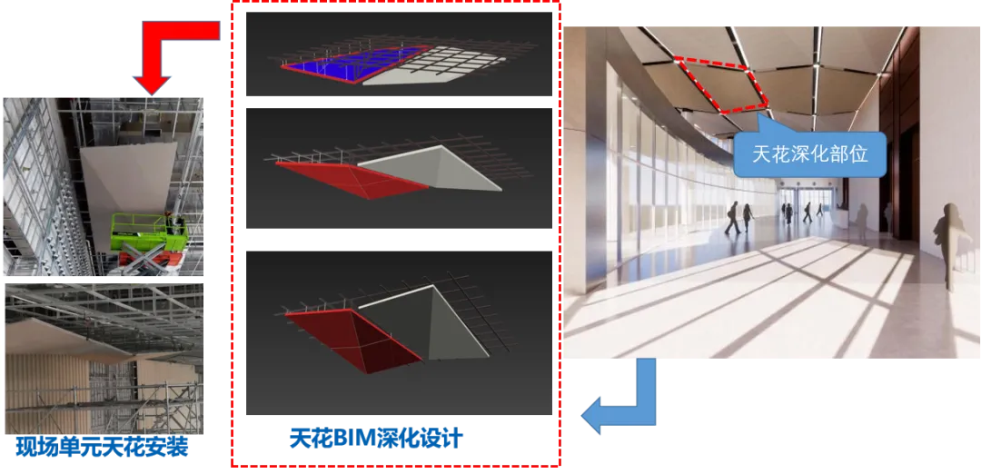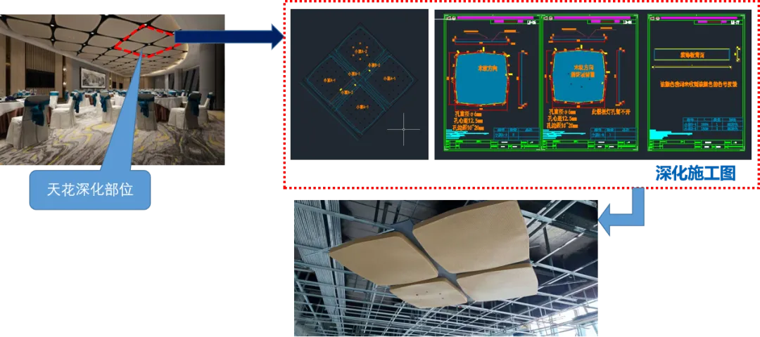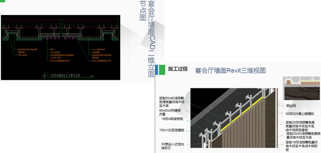 绍兴国际会展中心装饰材料如石材、瓷砖、金属板、玻璃、硬包、集成板木制作、收边口的节点深化与动画工艺展示,提高了项目部现场装饰施工管控的能力与水平。