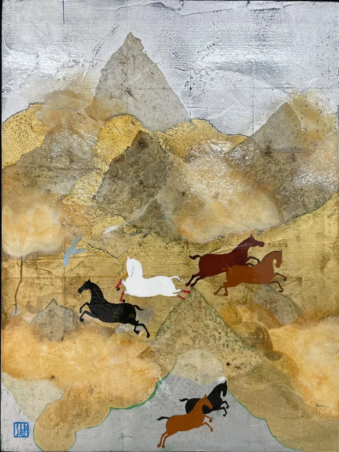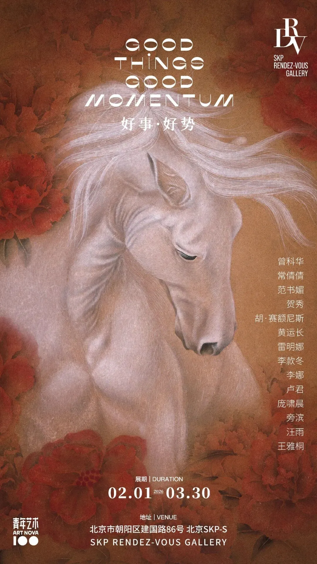 当铜铃轻响在空间里悠然荡开,清越声线如茶马古道上悠远的马铃,引着我们踏入一个以马为媒的精神场域,思绪随之漫入松弛沉静的韵律中。马,不只是奔跑的生灵。它可以是通体皓白的纯粹,在工笔线条里藏着柔中带刚的韧;也可以是红与白的碰撞,在色彩交织间诉说东方美学的刚柔并济。它是密林深处穿透荫翳的光,是古意山水里的寂静回响,也是华丽表象下的无形羁绊,更是凝视中生命本真的情绪流露。从工笔细丝到坦培拉的光影,从水墨氤氲到金属编织的虚实,马以不同的姿态浮现。不同创作者以多元语言勾勒出“马”的万千面相——既是自由图腾,也是精神投影;既是奔逸力量,也是沉静哲思。愿清脆马铃捎来马年“好事”吉兆,奔腾生灵开启“好势”新程。As the soft chime of bronze bells drifts through the space, their clear resonance recalls the distant sound of horse bells along the ancient Tea Horse Road. We are gently led into a contemplative realm shaped by the presence of the horse, where thought slows and settles into a quiet, unhurried rhythm.The horse here is not merely a creature of speed. It may appear in luminous white, its apparent purity carrying a quiet resilience embedded within precise, delicate lines; or in the interplay of red and white, where contrasting hues articulate an Eastern sensibility of balance between strength and grace. At times, it is a shaft of light breaking through dense woodland; at others, a muted echo within classical landscapes. It suggests unseen bonds beneath ornamental surfaces and reveals, through stillness and observation, the emotional core of living presence.Across mediums and techniques—from meticulous brushwork to tempera's shifting light, from ink's atmospheric diffusion to the tension between solidity and absence in woven metal—the horse takes on ever-changing forms. Through diverse artistic languages, each artist offers a distinct interpretation: the horse as a symbol of freedom and a mirror of the inner spirit, as both surging vitality and contemplative calm. May the ringing of horse bells carry auspicious promise, opening a new cycle of momentum, direction, and becoming.