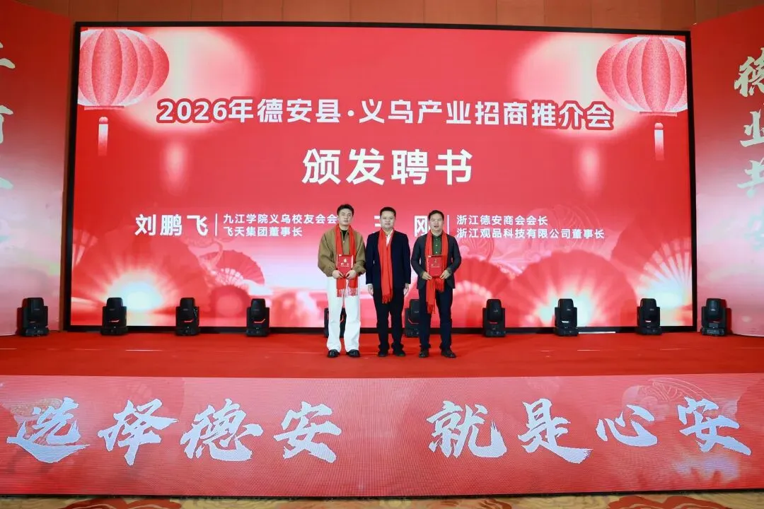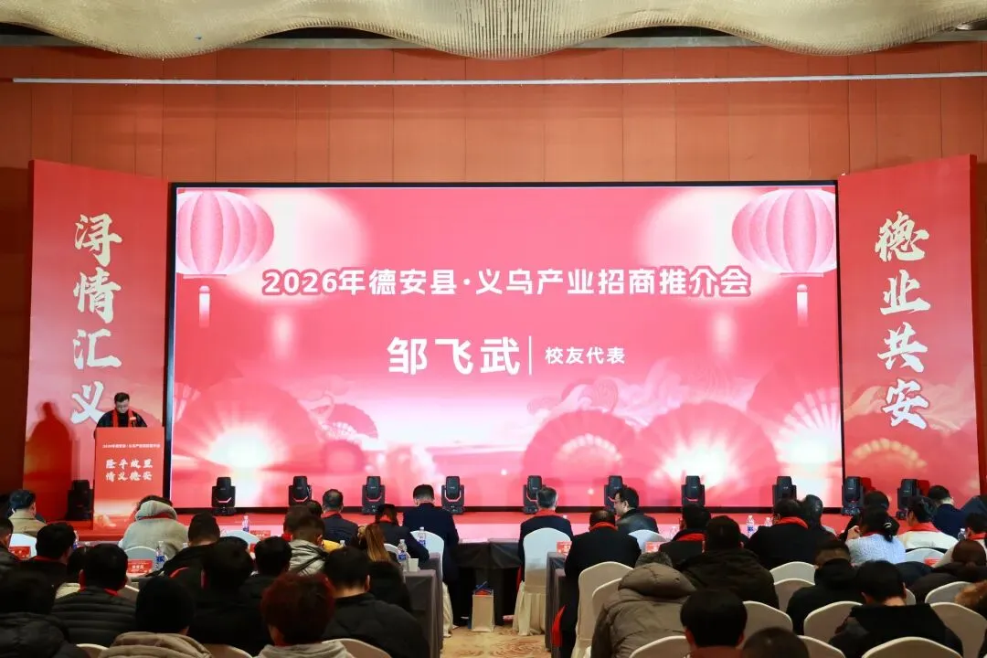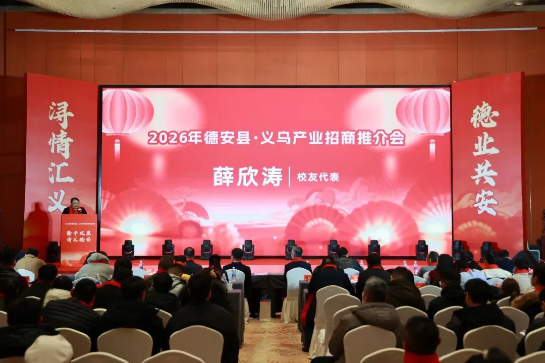 1月30日,首届德安•义乌产业招商推介会召开,九江学院党委委员、副校长鲁卫东,县委书记艾菲,九江学院义乌校友会会长、飞天集团董事长刘鹏飞致辞,九江市人民政府驻上海联络处主任王后强出席,县委常委、县政府常务副县长周纬华主持。黄怡旋、邓军、魏霞、罗颖以及九江学院校友企业家代表、德安县相关职能部门负责人、德安县各乡镇场负责人参加。