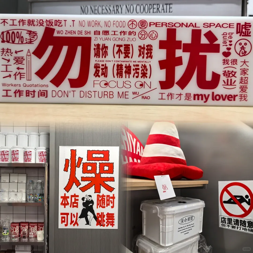 店内最大的特点,是用各种有趣的文字梗标语做装饰。