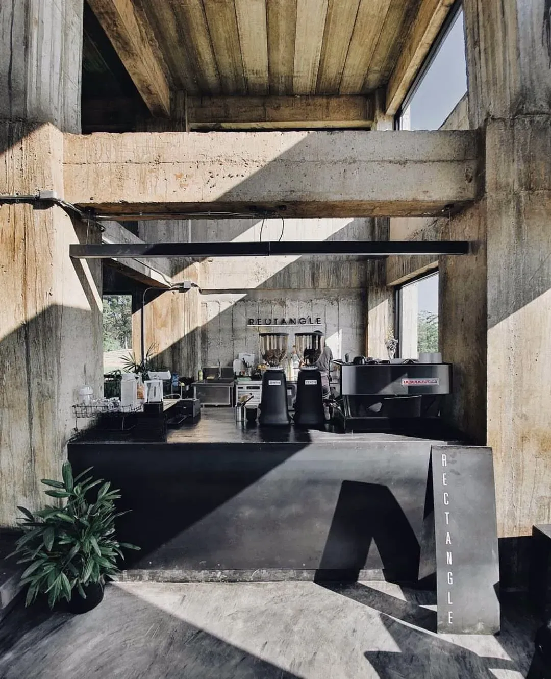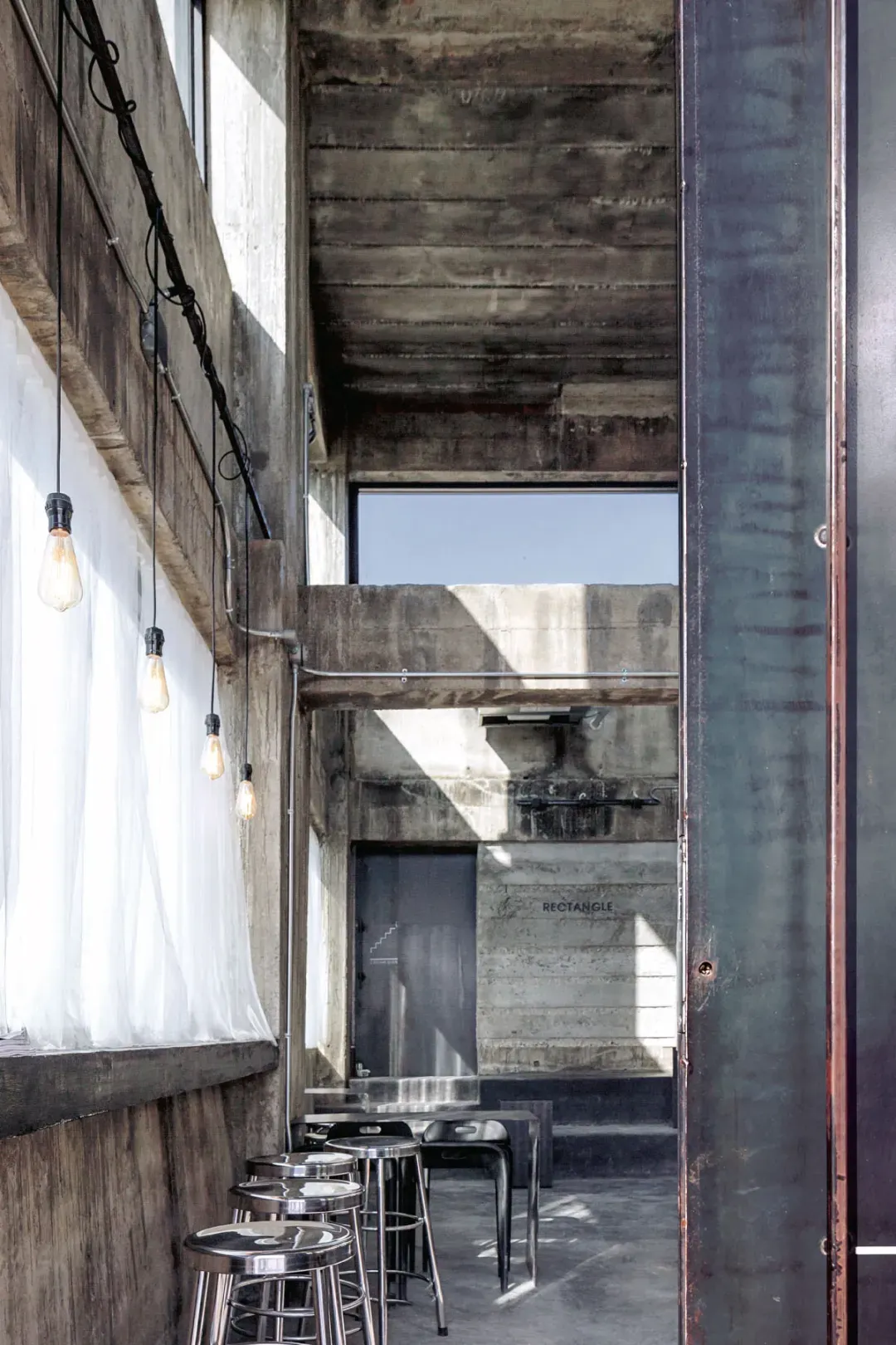 这是一家咖啡馆,没有门,没有窗,只有一堵灰色的墙,一个特别的“山洞”,洞口被微黄的灯光笼罩着。
