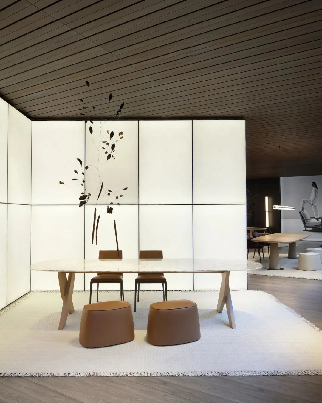 以“光之幕启”为灵感脉络,Maxalto 2026 系列如一段短暂的时光凝驻、一次瞬间的静默留白,轻盈截断叙事流并展现出新的光彩。这束源自 2026 年巴黎 Maison & Objet 展会的光芒,亦是系列演进中一帧精妙的定格瞬间。全新设计与产品延展在此交汇,形态、材质与细节以更具张力的方式重新绽放。这束光既具隐喻意义亦触手可及。它照亮家居的内在灵魂,并在全新餐边柜的辉光中得到回响——象征着一个重拾乐观与精致设计表达的时刻。