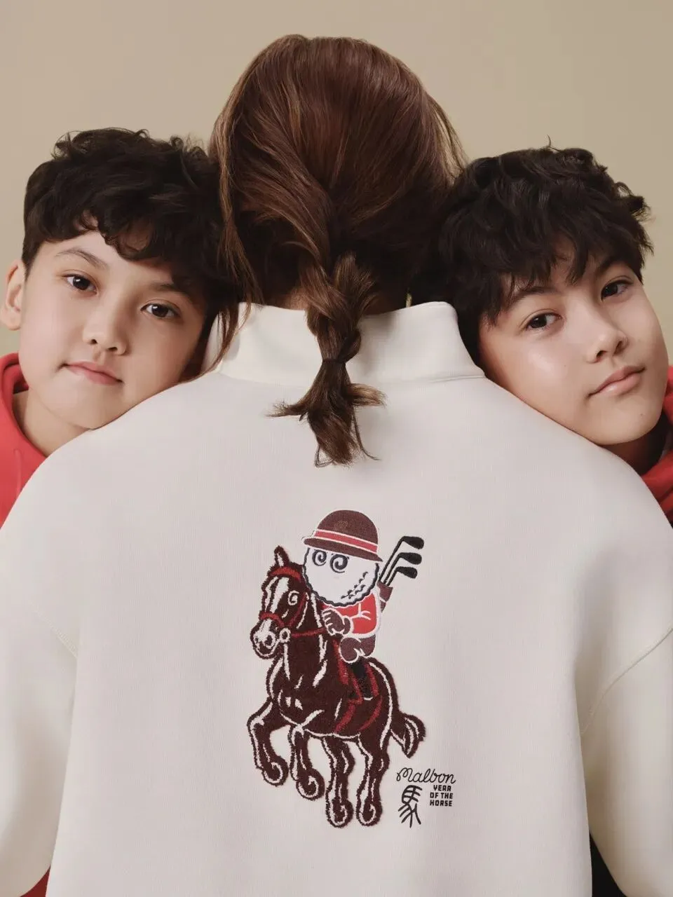 本次快闪空间的视觉焦点——Malbon 2026“中国马年”限定系列,标志着洛杉矶的设计基因与中国传统文化的一次深度对话。限定系列在设计细节上极具匠心:成人系列通过形似篆体“马”字的细节标识,演绎层次丰富的质感审美;而儿童系列则以充满好奇心的卡通画风,鼓励新一代勇敢探索未知。系列选用了代表节庆仪式感的中国红、深邃的藏青色以及优雅的象牙白作为核心色彩,并结合牙刷绣、光线包针绣等精致工艺,让高尔夫运动的质感在每一寸面料中自然流露。