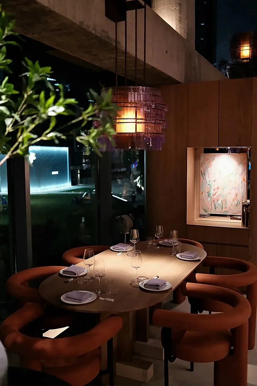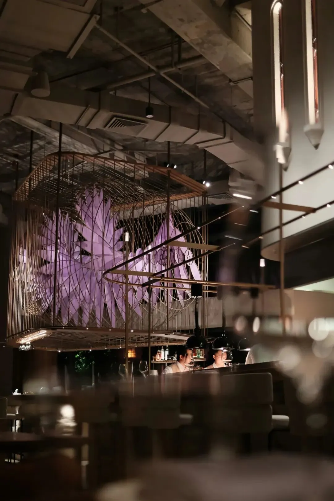 位于全新的永源路商业街区,Diverse Simplicity 是对 Aster 集多元餐饮功能于一体的描述。这里既是多元餐饮形态组合而成的惬意空间,在整体上又呈现出相互和谐一致的氛围与体验。JP 表示最初的想法是打造一个更小、更随意的空间,把酒吧和餐厅结合起来,变成一个营业到很晚,最终可以全天营业的餐饮去处。当找到现在 Aster 的位置时,他们决定对概念进行演变,形成了 Aster 如今的形态。保留了想要的核心:提供具有乐趣感、大胆风味、适合分享的出品,拥有轻松优雅的体验。一个“有格调又舒适”(Upper Casual)的空间,有着平易近人的气氛、高品质的餐饮,仍让人感觉很特别,但永远不会显得拘谨。