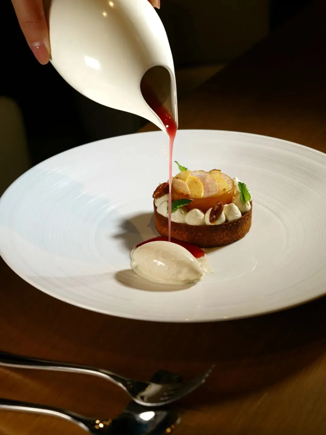 在食材的选择、烹调的技术运用,以及摆盘和呈现层面,JP 认为 Aster 不用遵循传统高级餐饮(Fine Dining)的规则。但出品必须需要注重基本功,也就是出色的酱汁、严谨的技巧功底、精准的烹饪效果和干净并顾及温度的摆盘。同时在调味方面,JP 的出品理念是需要完整表达“真实”的风味。这意味着尊重一种风味原本完全的特点,而不是因为要打安全牌或者要更符合大众口味,去稀释它或局部改变它。