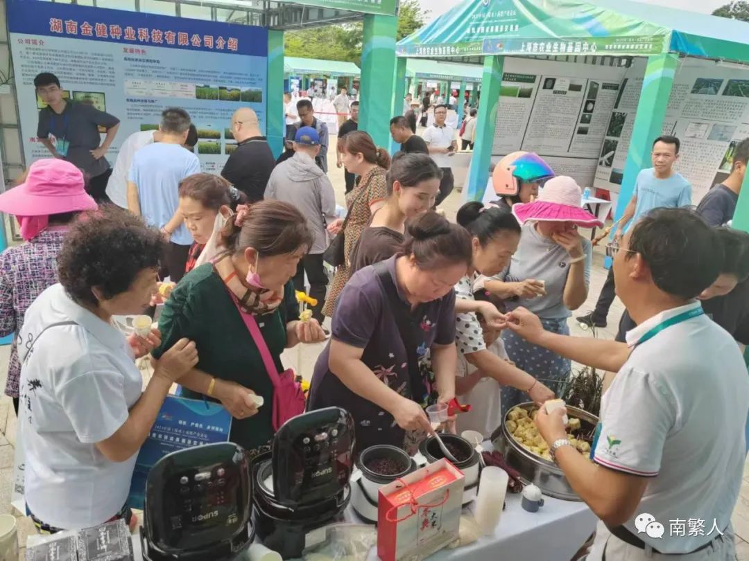 与会人员在南繁基地候鸟人才工作站展区驻足品尝 络绎不绝