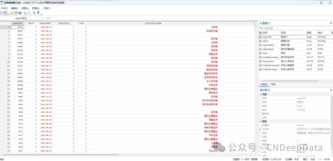 CNDD-0177 上市公司调研活动机构信息及学术论文应用▪ 数据名称: 上市公司调研活动机构信息