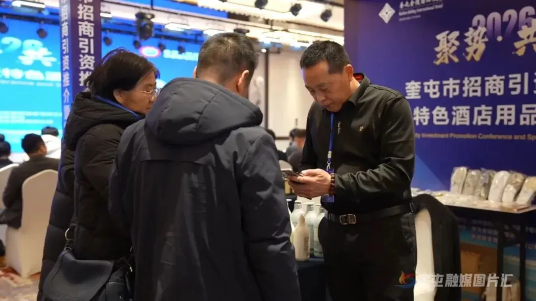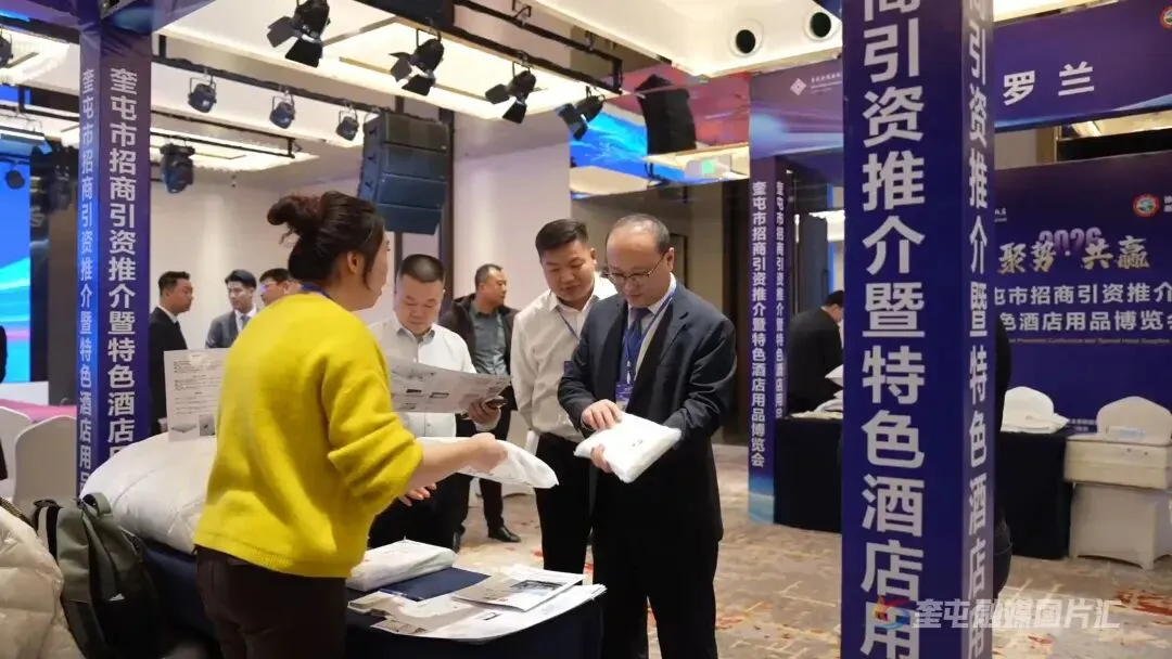 活动中,奎屯市商工局负责人介绍了奎屯市的产业优势与招商引资政策。博览会共设29个特色展位,集中展示了酒店布草、餐饮器具、环保产品及新疆特色农副产品等,吸引众多企业对接洽谈、签订合作协议,涵盖酒店布草、清洁用具、洗护用品、香氛、床垫、智能酒店管理系统、特色食品伴手礼等十二个项目,签约总额达600余万元,实现展会“开门红”。