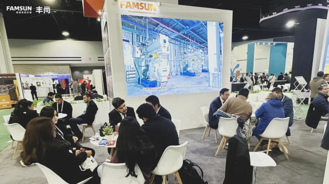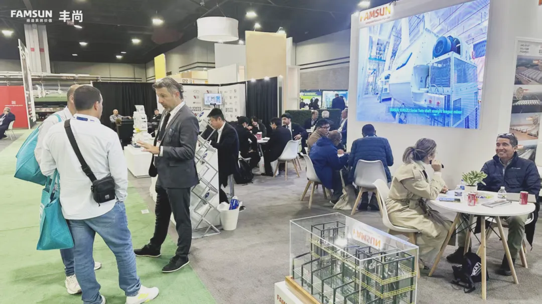 展会期间,丰尚展台吸引了众多美国本土及国际客户的关注,并成功与多家饲料企业现场签署了合作协议。客户对K50制粒机的智能控制系统、高效节能表现,以及宠物食品沙盘中体现的营养与卫生工艺给予高度评价。