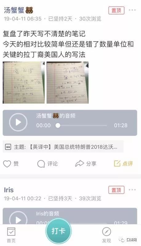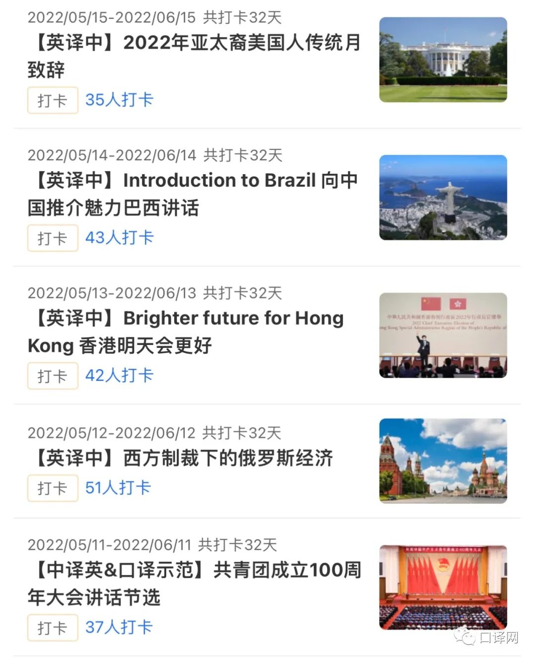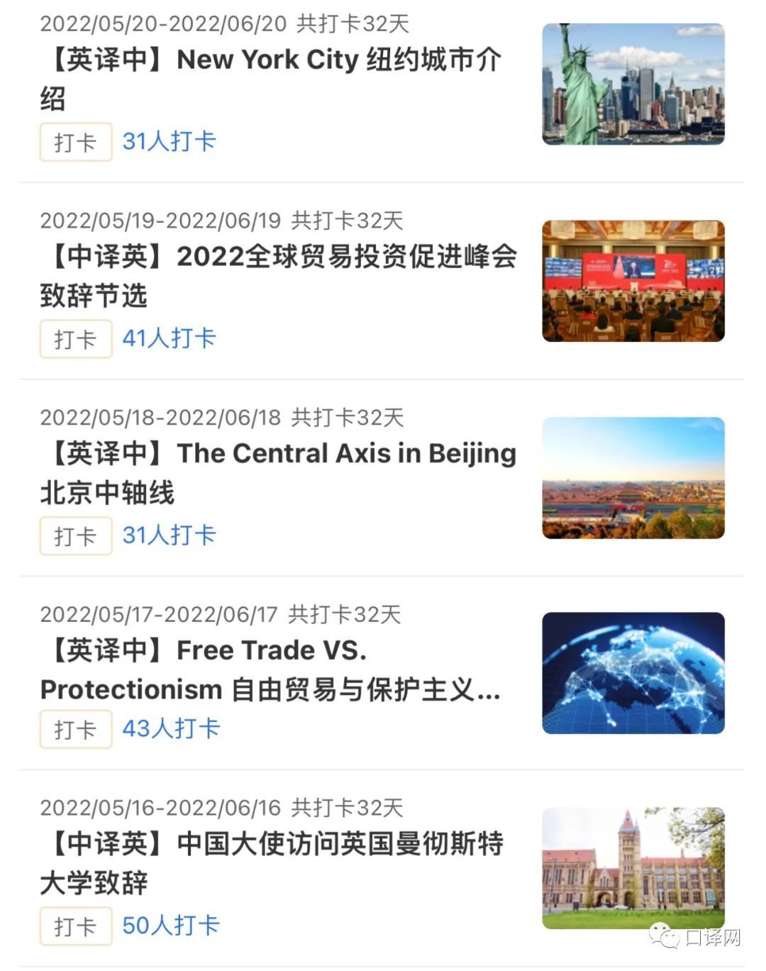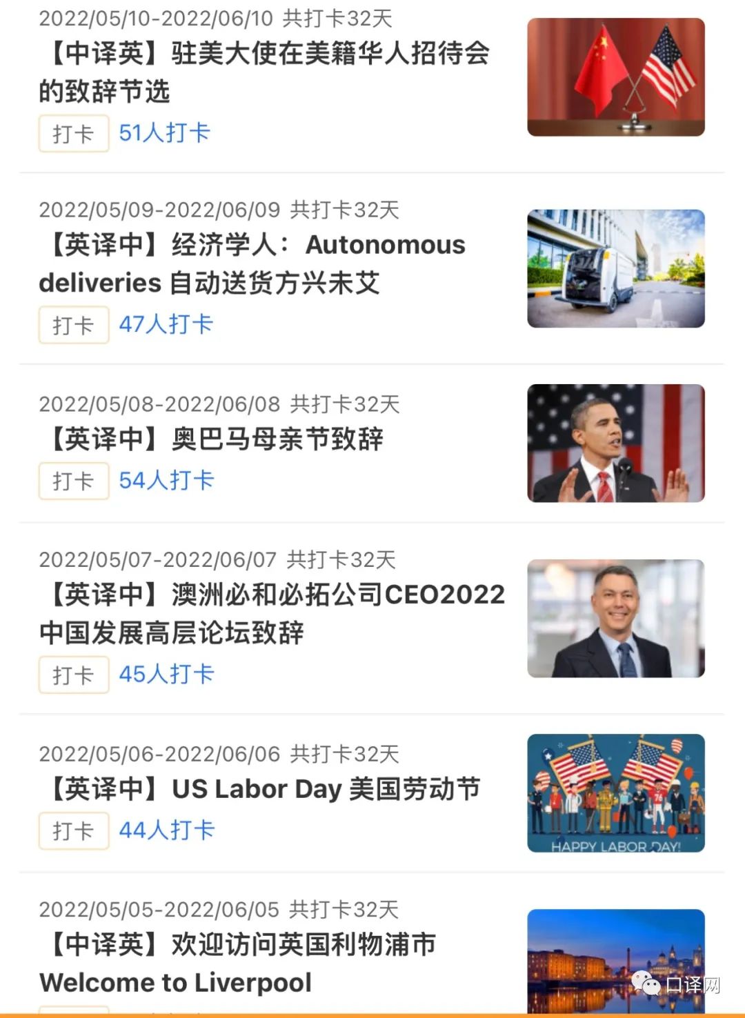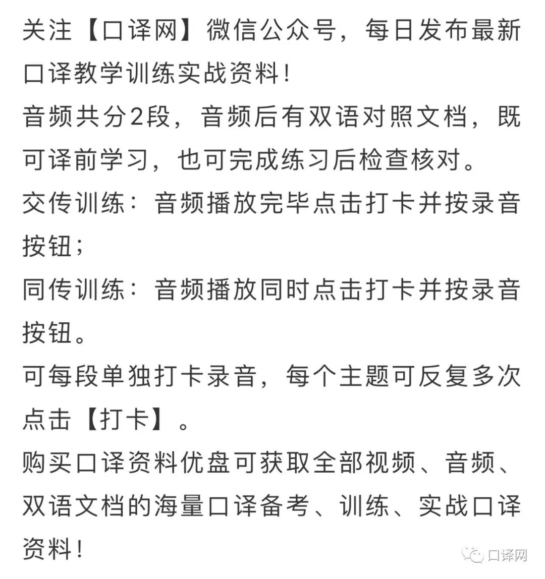 【口译网训练营】微信小程序已上线4年多啦!资料上千篇且还在每日更新中,全部可练,口碑爆棚!数千名用户正在每日坚持打卡训练,包括众多职业译员、高校教师、口译学习者……现在口译网训练营开放招募中,赶快按下面说明加入【口译网训练营】打卡圈吧!