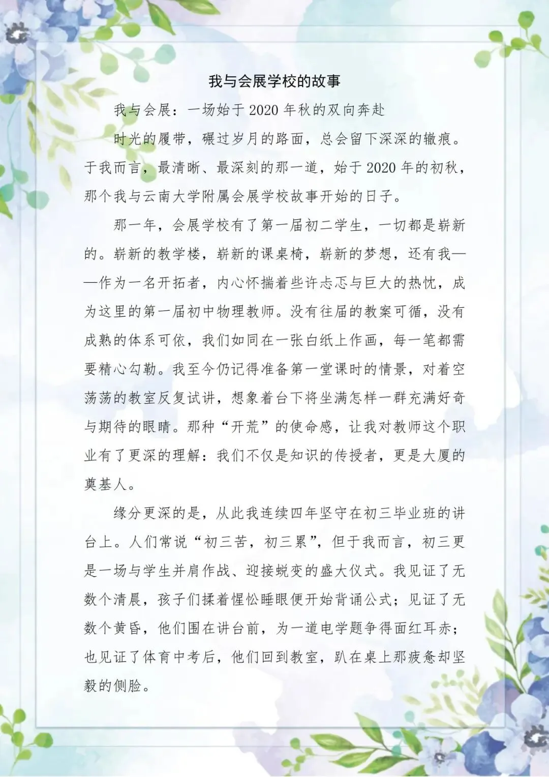 时光执笔,书写教育的年轮;初心如灯,照亮成长的前路。在云大附属会展学校的岁月长廊里,每一段故事都闪烁着温暖而坚定的光,每一位师者都以自己的方式,在这片沃土上耕耘、守望、绽放。他们用陪伴融化成长的冰霜,以坚守回应时代的变革,将奋斗写进学校发展的脉络。这里的故事,从来不是独白,而是一曲曲深情交织的育人合奏。