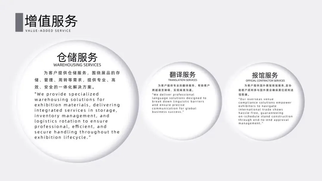 针对企业“本土化落地难”的问题,我们的德国海外团队拥有本土化的服务经验,能为企业提供展台搭建、现场执行、当地资源对接等一站式服务,让企业无需为海外参展的落地细节费心,专注于品牌展示与客户对接。