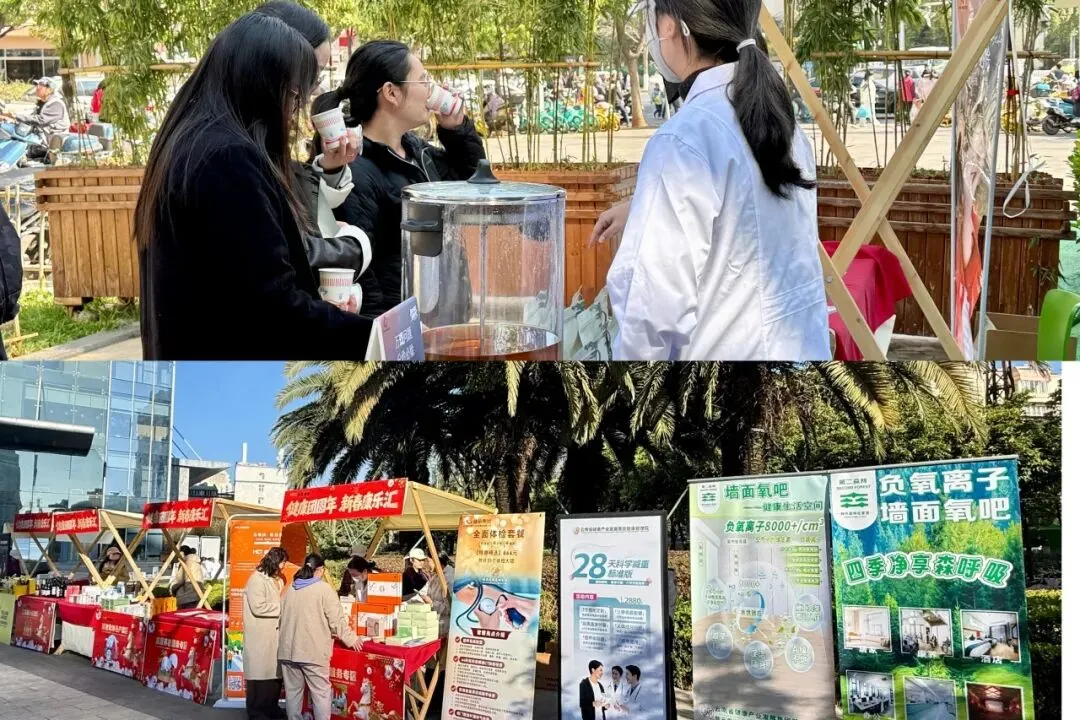1月28日,公司于融城优郡A座一楼侧广场举办“中医义诊+健康年货节”,活动聚焦周边市民与集团职工核心需求,梳理整合了公司旗下度假区中医院、健康管理院、太阳魂公司、健康医药公司、“雲頤园·椿萱蕙”五家单位的代表性产品,打造义诊服务与年货展销一站式健康体验平台。由专业医护团队提供免费问诊、体质辨识、健康咨询等服务,同步展销适老化辅具、日化护理用品、太阳魂红酒果汁、中医理疗服务包、健康体检套餐等产品,取得了较为良好的社会效益与经济效益。