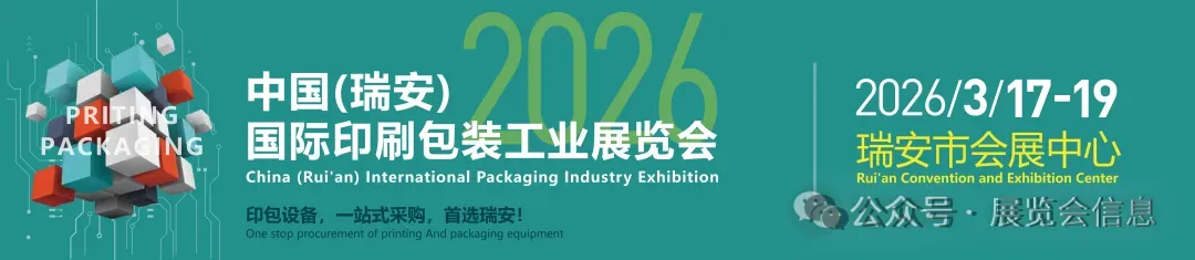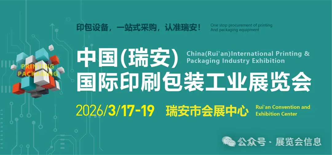 2026 中国(瑞安)国际印包工业设备展览会将于 3 月 17 日 - 19 日在瑞安市会展中心(瑞安市临湖路111号)举办,以 “打造印包基地展” 为主题,立足瑞安印包机械产业集群优势、辐射长三角的专业展会。