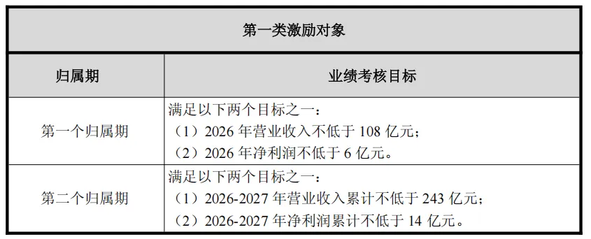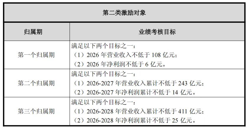 公司层面业绩考核指标选取营业收入和净利润(剔除股份支付费用影响),设置 “二选一” 目标,贴合储行业规模增长的营收驱动特性,兼顾盈利质量要求,具体目标如下: