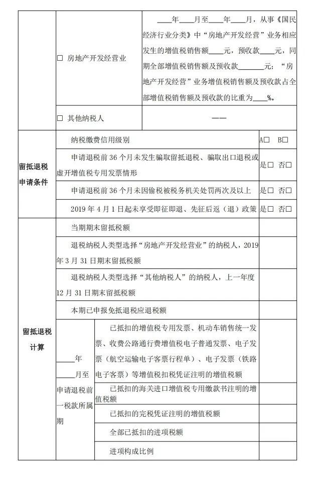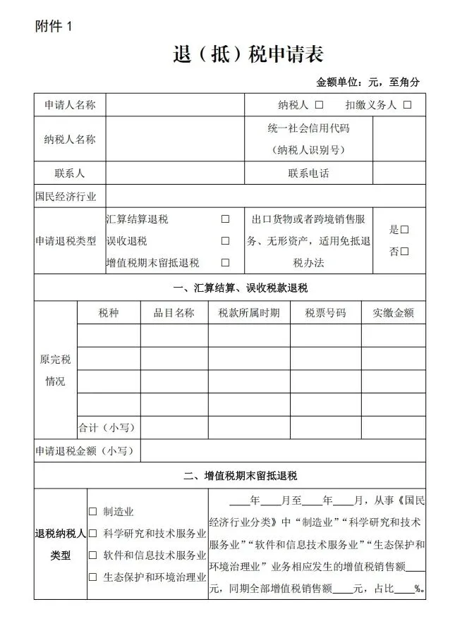 1. 《退(抵)税申请表》(电子税务局自动生成或手工填写)
