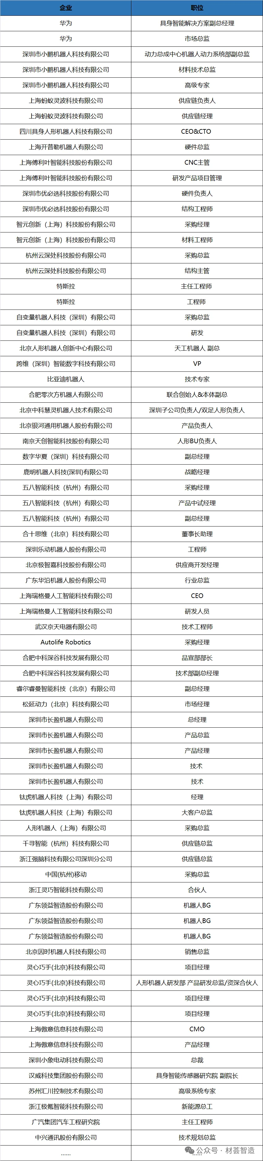 专题一:人形机器人量产在即,机遇与挑战 主题发言一:联合创新,共迎具身智能万亿赛道 纲要:1)中国人形机器人发展现状及未来趋势解读;2)人形机器人量产在即,供应链企业的发展机会与挑战。 发言嘉宾:华为 具身智能解决方案副总经理 主题发言二:通用人形机器人新材料及零部件应用配套需求 纲要:本次分享聚焦通用人形机器人产品在新材料应用及零部件配套方向需求展开,结合其在商业服务、教育科研等主要应用场景落地过程中对于新材料及核心零部件的应用和配套需求,阐述轻量化、柔性、安全、多模态、低成本等核心材料诉求,介绍具身智能赛道当前的实践成果及发展趋势,为新材料及高端制造行业提供真实迫切的需求参考,助力产业链协同创新,加速通用人形机器人产业化进程。 发言嘉宾:千寻智能(杭州)科技有限公司 供应链部/供应链总监 主题发言三:情感交互人形机器人产品的新材料应用需求纲要:在人形机器人量产的迫切需求下,人形机器人主机厂公司都在探索人形机器人批量化产品落地应用。在批量化生产过程中,人形机器人轻质材料的应用探索更是行业创新应用的重要方向之一。特别是考虑到交互人形机器人的人机交互场景,更是需要探索具备轻质、柔性、安全、便宜等特性新材料的结构件、覆盖件。本报告通过四川具身人形机器人研发生产过程中的尝试,在一定程度上给新材料行业提供真实迫切的人形机器人产品的新材料需求。 发言嘉宾:四川具身人形机器人科技有限公司 CEO&CTO 主题发言四:人形机器人国家队在本体材料方面的需求探索与应用进展 纲要:当前,基于已落地的线下商业场景七大赛道——商业服务、健康养老、教育科研、工业应用、制造业、特种作业等领域,人形机器人对其本体材料提出了多样化且具针对性的需求。在发展过程中,轻量化设计与适应多场景作业能力的提升,已成为材料研发的核心重点。本次分享将系统阐述人形机器人国家队在推动真实场景落地过程中,所形成的具体材料需求以及目前已取得的实际成果。 发言嘉宾:北京人形机器人创新中心有限公司 副总 主题发言五:人形机器人的量产进程与先进材料需求洞察纲要:2026年,在全球人形机器人从“功能验证”迈向“规模化应用”的关键节点,先进材料成为影响性能与量产可行性的核心变量之一。本次分享将系统梳理人形机器人量产动态及商业化应用趋势,关键材料体系的应用,展望未来人形机器人与新材料的需求与趋势。现场发布《人形机器人核心硬件白皮书》&《2025全球灵巧手市场深度(节选版)》。 发言嘉宾:M2觅途咨询-具身智能研究院 高级咨询顾问/项目经理 更多发言确认中。。。 |