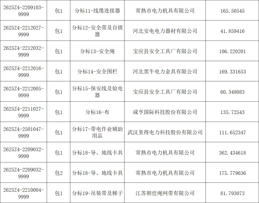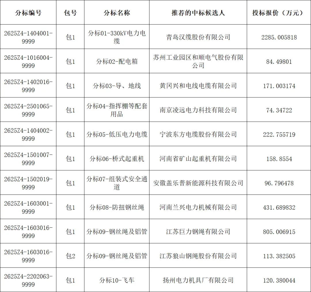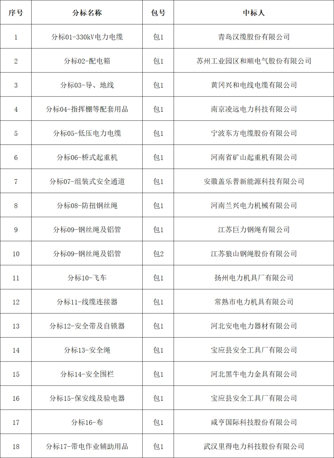 国网陕西省电力有限公司2025年新增第三次子公司(含原集体企业)物资集中招标采购项目中标候选人公示活动已经结束,现将中标结果公告如下: