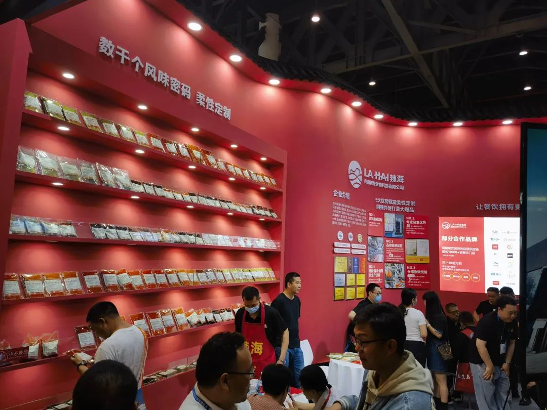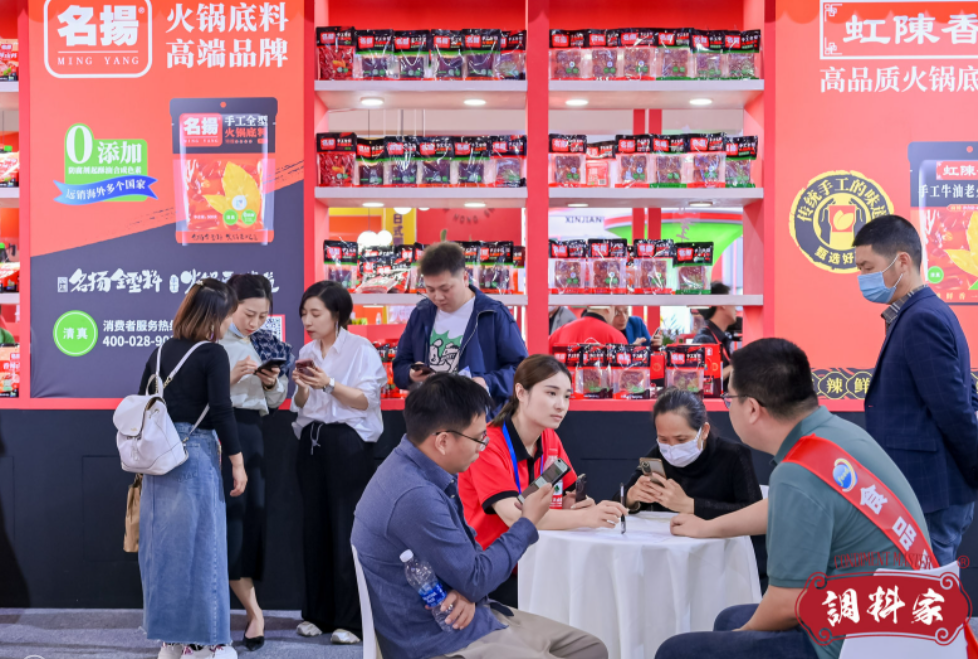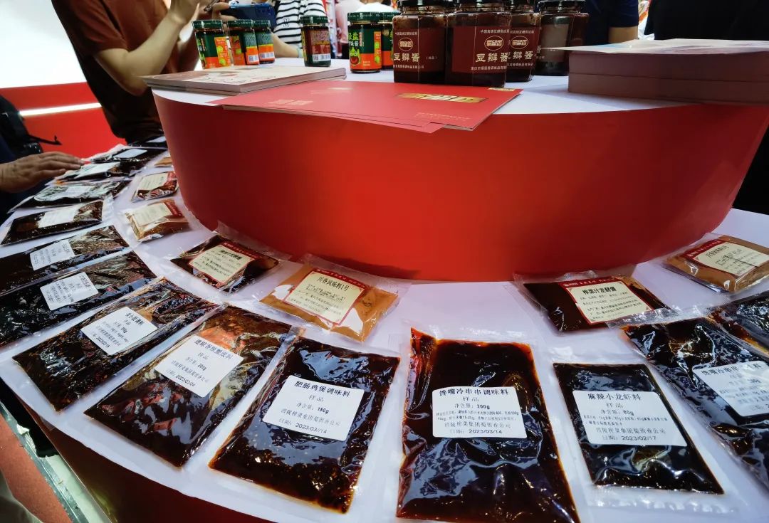 我们将继续分享本届糖酒会上调味品行业的两大“主角”:火锅调料和定制餐调领域。自火锅调料兴起以来,一直都是糖酒会上调味品展区中的“顶流”,本届糖酒会上也不例外。红九九、秋霞、名扬、肖老五、大龙燚、麻辣江湖、麻辣空间、红山河、九眼桥、臻鲜等众多火锅调料品牌集体亮相。不过,相比往年,今年的火锅调料明显有所减少。这主要和整个火锅调料板块收窄有直接关系。