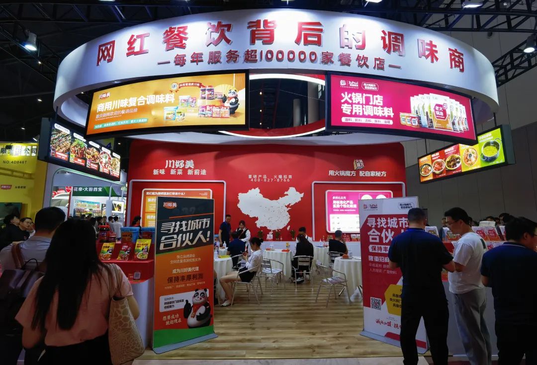 而恒星除了豆瓣酱之外,旗下味之浓食品在复合调味品上也深耕多年,先后开发了多款深受消费者喜爱的产品。在本次糖酒会上,还展出了大虾火锅底料、川式老卤水、火锅蘸料台底料等几款业内首发新品。值得一提的是,恒星味之浓主要就是以餐饮渠道为突破口。作为定制餐调领域的头部品牌,聚慧餐调此次也带来了火锅魔方和川好美两大品牌亮相。前者主打“用标准化产品帮助餐饮企业实现个性化味道”,也就是通过柔性定制来帮助火锅或其他餐饮企业解决口味标准化问题。而后者则主要以直面C端的标准化产品帮助餐饮企业降本增效和家庭消费场景需求。