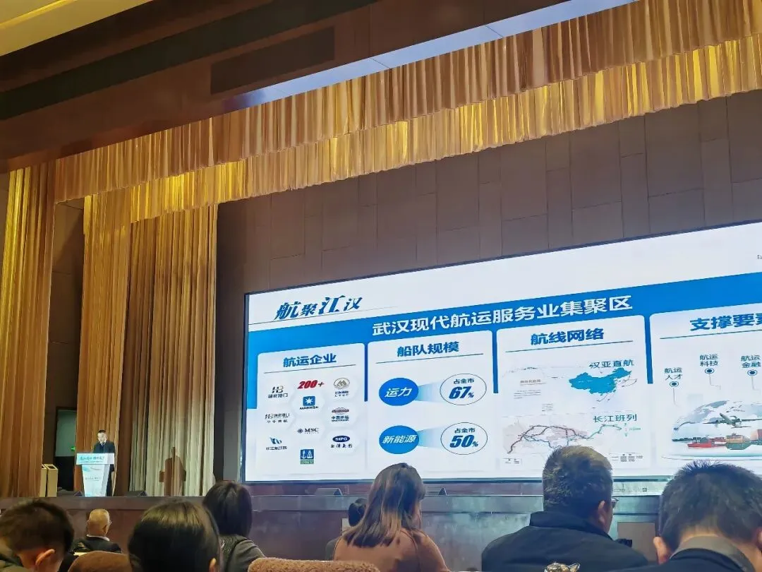 2026年1月23日下午,“通江达海 畅联天下——武汉现代航运服务业集聚区建设暨‘汉亚直航’推介会”在武汉会议中心举办。推介会由武汉市江汉区人民政府、华中港航物流集团有限公司联合主办。武汉市政府副秘书长徐盛敏、湖北港口集团党委副书记易文成、江汉区委书记叶文静分别致辞。江汉区现场发布航运服务业高质量发展支持政策,涵盖企业落户、载体建设等领域,为产业升级注入政策动力,进一步推动武汉“一公里滨江带”航运服务生态优化,助力长江中游航运中心高质量发展。