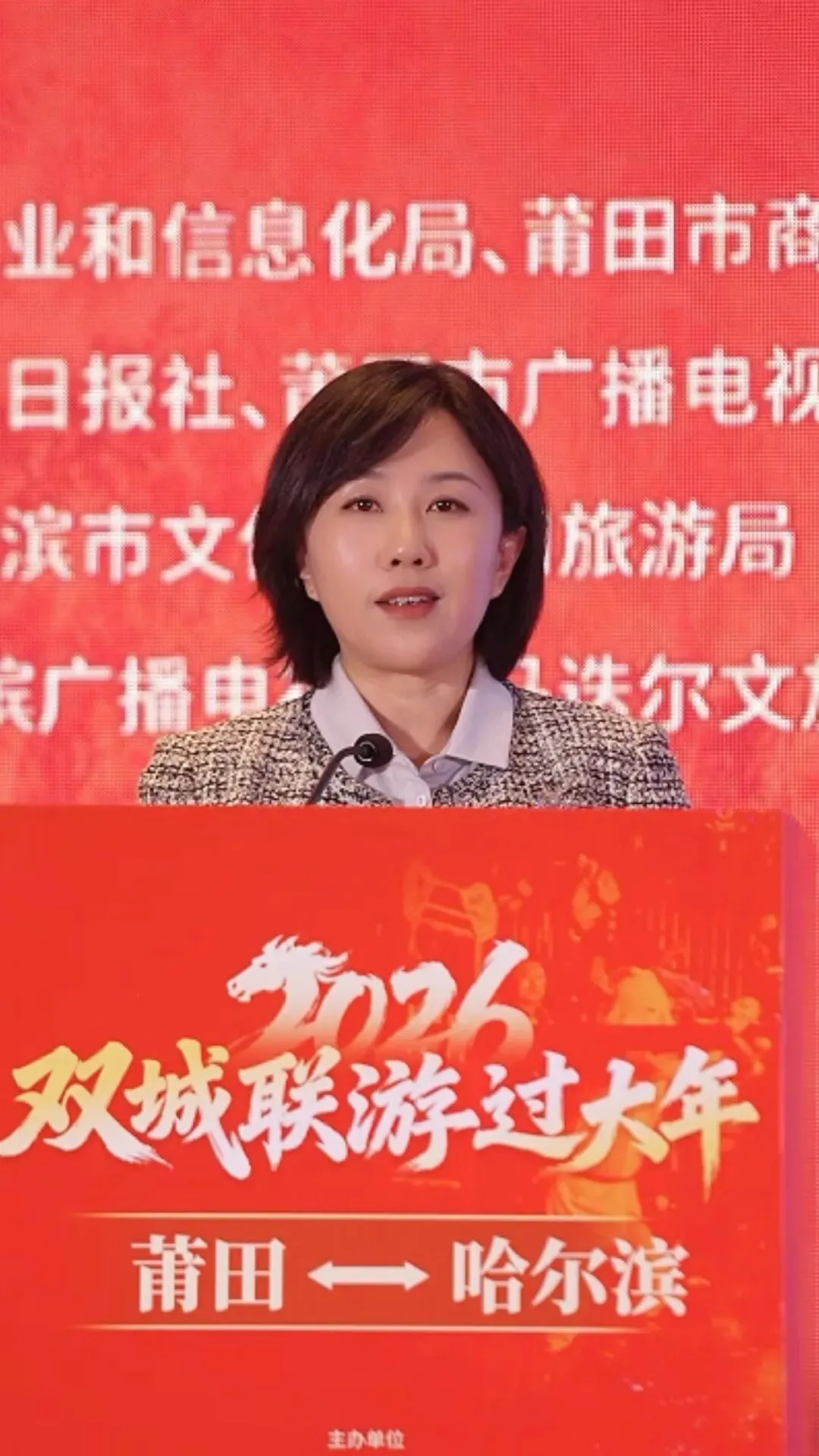 莆田市委常委、宣传部部长陈惠黔在推介时说,此次推介活动,带着360多万莆田人民的期待而来,既是为了学习好哈尔滨文旅高质量发展的先进经验,更要推介好莆田春节的独特年味,宣传好两地的山海情缘。诚挚邀请哈尔滨以及全国游客,2026年正月,全到莆田过大年!