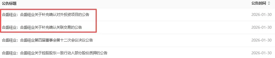 在被浙江证监局责令改正数日后,1月30日,合盛硅业补充披露了关联交易和重大投资项目的信息。