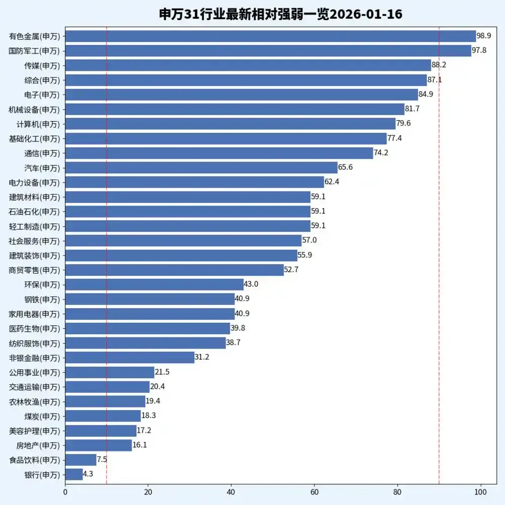 图1-4 申万31行业相对强弱一览表(取2026-1-16数据)