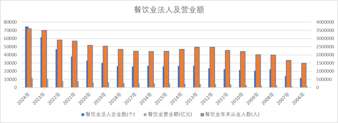 酒是餐桌上的品种,再来下餐饮业数量和营业额: