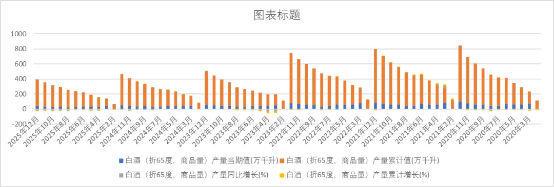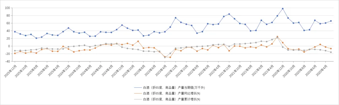 再来看下白酒行业的供给情况,请注意,这是产量(也就是供给情况)而不是销售情况,这次数据从2020月到2025年12月: