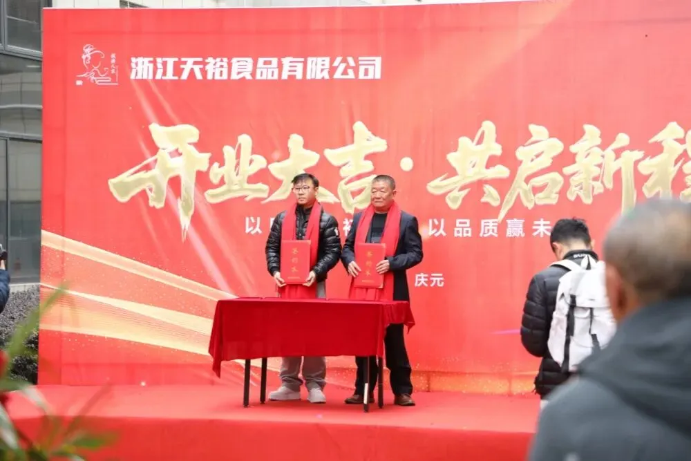 同日,天裕食品的发展蓝图进一步展开。公司不仅与杭州杨先生品牌管理有限公司签署市场战略合作协议,更与浙江工商大学食品学院达成深度产学研融合:双方共同签署《庆元特色食用菌与药食同源产品创新开发研究》合作协议,并揭牌成立“绿谷食品健康产业研究院”与“天裕食品健康食品创新开发联合实验室”。