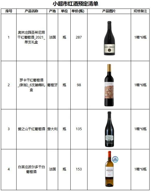 大家好,应广大小伙伴要求,小超市再次为大家提供纯正进口红酒的预定,本次预定为最后一次预定,后续不会在发起该品类的预定了,有需要的员工请及时预定。