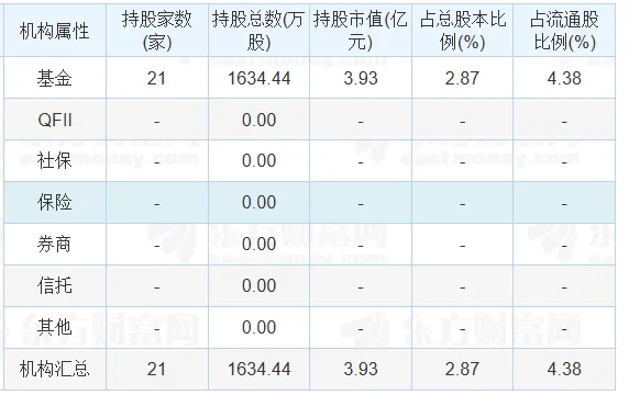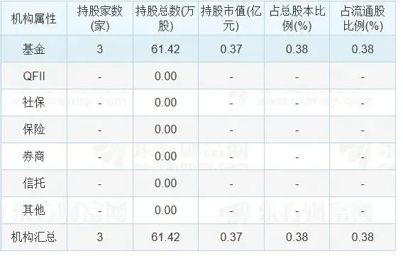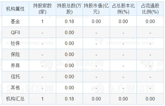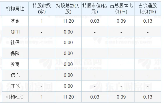 根据披露的年报机构持仓数据,该公司被1家基金持有市值0.03亿元。