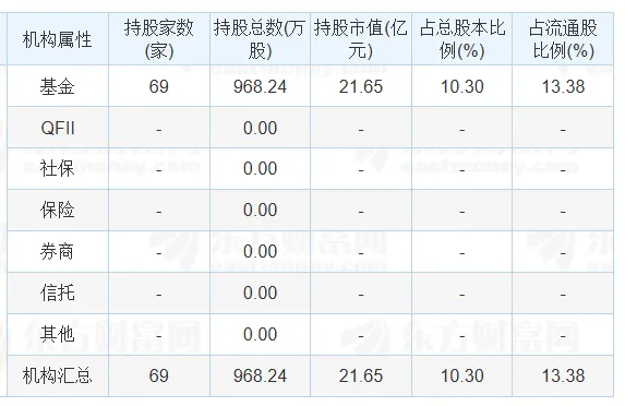 根据披露的年报机构持仓数据,该公司被6家基金持有市值21.65亿元。