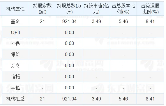 根据披露的年报机构持仓数据,该公司被21家基金持有市值3.49亿元。