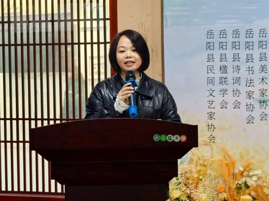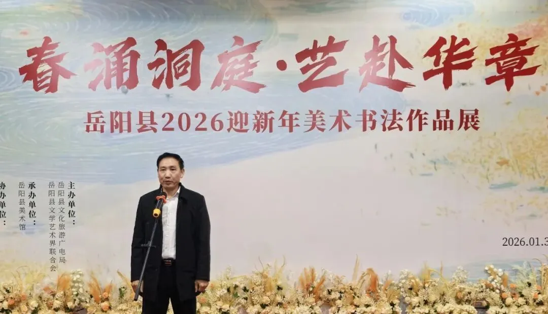 黄丽娟局长代表主办方对各位来宾的莅临表示热烈欢迎,向所有为展览付出努力的单位与个人致以诚挚谢意。黄局长指出,岳阳县襟带洞庭、文脉绵长,得天独厚的自然与人文资源为艺术创作注入不竭灵感。本次展览是县域文旅事业成果的集中检阅,展出作品或绘洞庭灵秀、或书家国情怀、或展时代风貌,尽显本土创作活力。县文旅广电局将以此次展览为契机,持续深化文旅融合,办好更多群众喜闻乐见的文化活动,让文化成果惠及更多百姓。