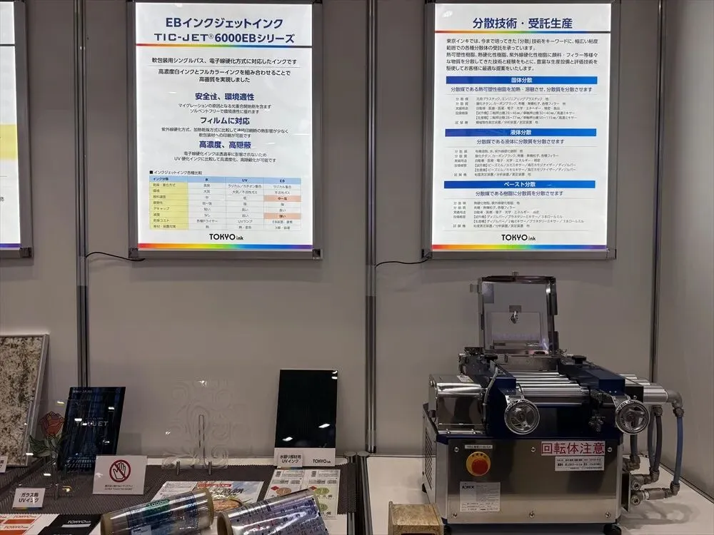 日前举办的2026日本纳米技术展览会上,东京油墨株式会社展出了用于喷墨打印的阳离子UV墨水,其卓越的附着力使其适用于一些意想不到的场合。