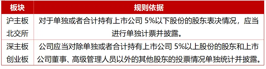 针对重大资产重组事项审议时,不同板块对不同身份或持股数量不同的股东有以下不同要求: